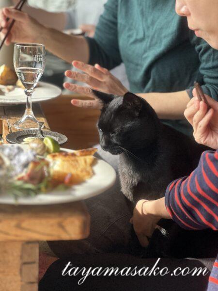 自家製アジの干物を狙うクロ!美味しいものをよく知っています。