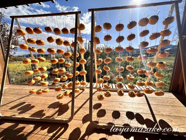 カビ防止に熱湯や焼酎に漬けますが、うちは日当たりがいい南向きの縁側で、カビは生えないのでむいてそのまま干してます。