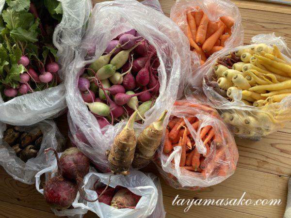 zund耕園さんのビーツとタケノコ芋。こちらも蒸したり焼いたり。