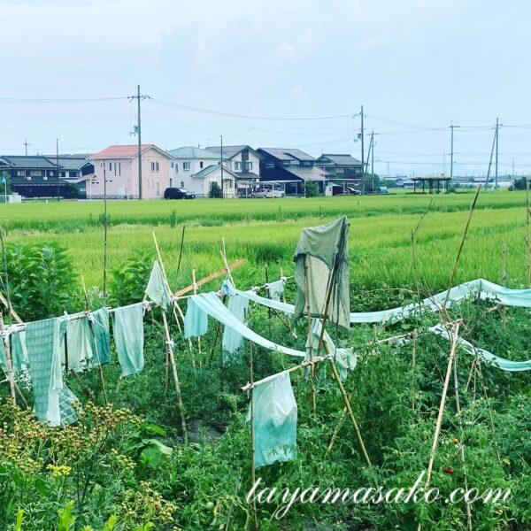 ガーゼの寝具はミントの上に干して。こういう風に干すと、いつも斬新!と言われるけれど、軽いものを置いてもびくともしないミントのお陰です。