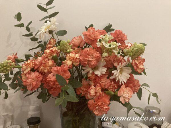 母が見えるところに、お祝いに買ったお花を飾りました。