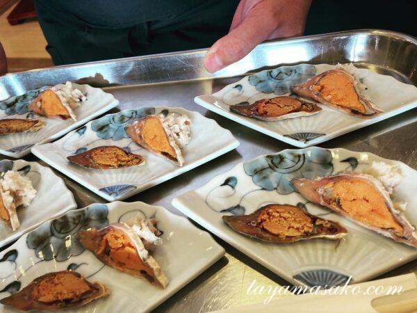 吉田酒造さんの酒粕を使って、鮒寿しを甘露漬けにされている魚治さんへも伺いました。