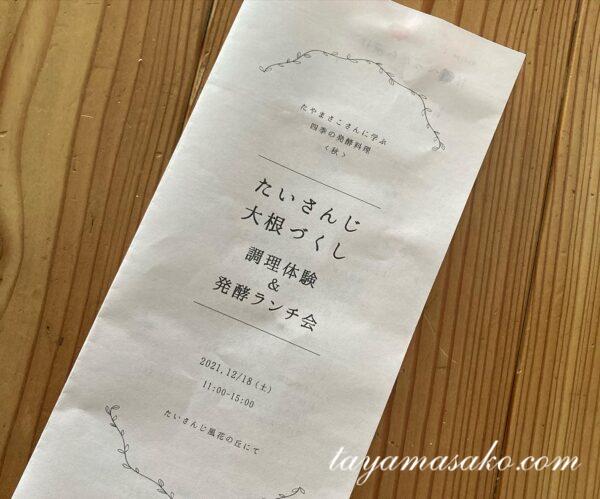 たいさんじ風花の丘さん主催、たいさんじ大根づくし発酵料理教室の講師を務めさせていただきました。