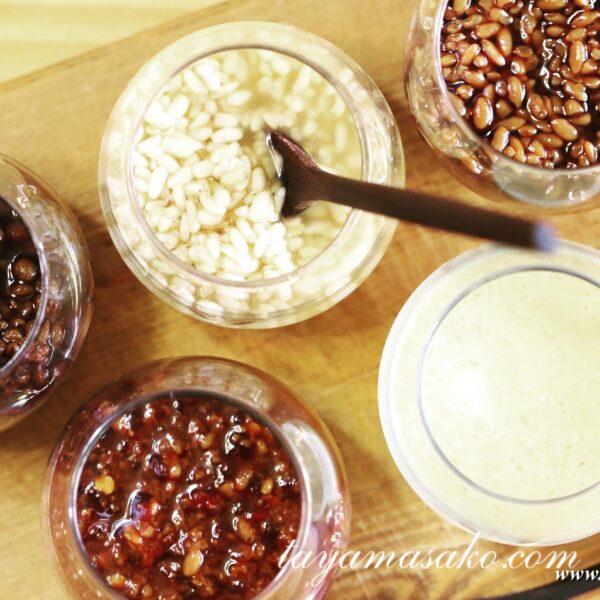 塩麴・甘酒・醤油麹。(塩分濃度や甘味、分解などマニアックな内容は発酵を極めるオンライン講座にて)